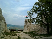 Miután a kiugró bércen kiszellőztettem a fejemet, elhatároztam, hogy harapok valamit. A remek magyar utak segítettek, mert a főtt tojásokat meg is pucoltam önkéntelenül útközben. Evés-ivás, fetrengés a padon, és egy kis felderítés a platón. Ekkor fedeztem fel a hely komfortfokozatát növelő berendezéseket, a wc, borhirdetés, tűzrakóhelyek, padok, asztalok esőbeállók adottságait. Az összbenyomás remek volt, különös tekintettel a nyugalomra. Nem hiszem, hogy turisták tucatjai keresnék fel minden nap, pedig csak pár km-re van Keszthelytől. Kipróbáltam számtalan padot, hogy melyiken milyen a fekvés, de aztán aggasztó felhőket fedeztem fel az égen. Visszatértem még a várhoz néhány fénykép erejéig, és körbejártam lent a tiltott útvonalon. Egy sziklán még megpihentem, aztán úgy láttam, hogy menekülőre kell fognom a dolgot hazafelé.